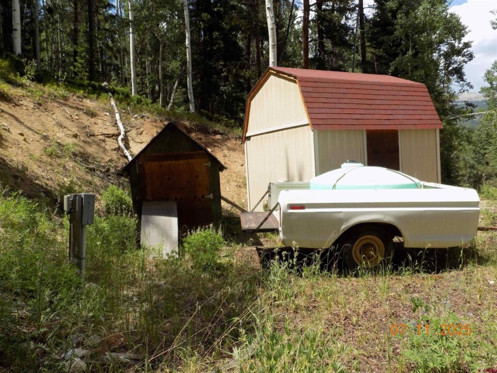 Gorgeous 10 acres looking for you! Building pad is already started, original owners used it as a camping spot. 3 sheds on the premises. Variety of inclusions : older model ATV, water tank and trailer for hauling, and more (all inclusions are in AS IS WHERE IS condition). Easy access on Grasshopper road. Close to the main association spring along with “No name” spring, just down the road. A great view up towards Chicago Park could be yours with some tree maintenance. All in all, it’s a great starter location, close to Pitkin and even has electricity. Good chance of decent cell service depending on carrier and your equipment. Mineral rights are available SLO. Another great gem on the mountain is now available.